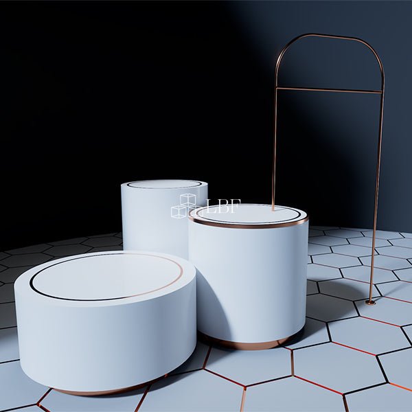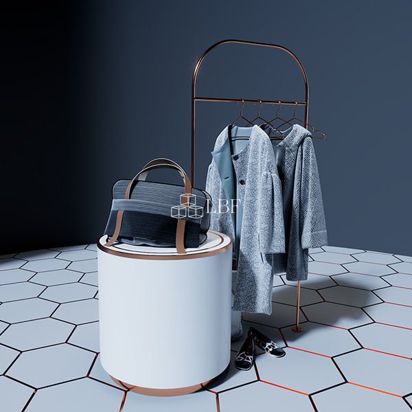 CR001 è un set di espositori che comprende 3 elementi di rack e piedistallo. Sono combinazioni opzionali in base alle vostre esigenze. La rastrelliera si applica per appendere i vestiti e il piedistallo per i vestiti piegati, le scarpe, le borse e così via.
